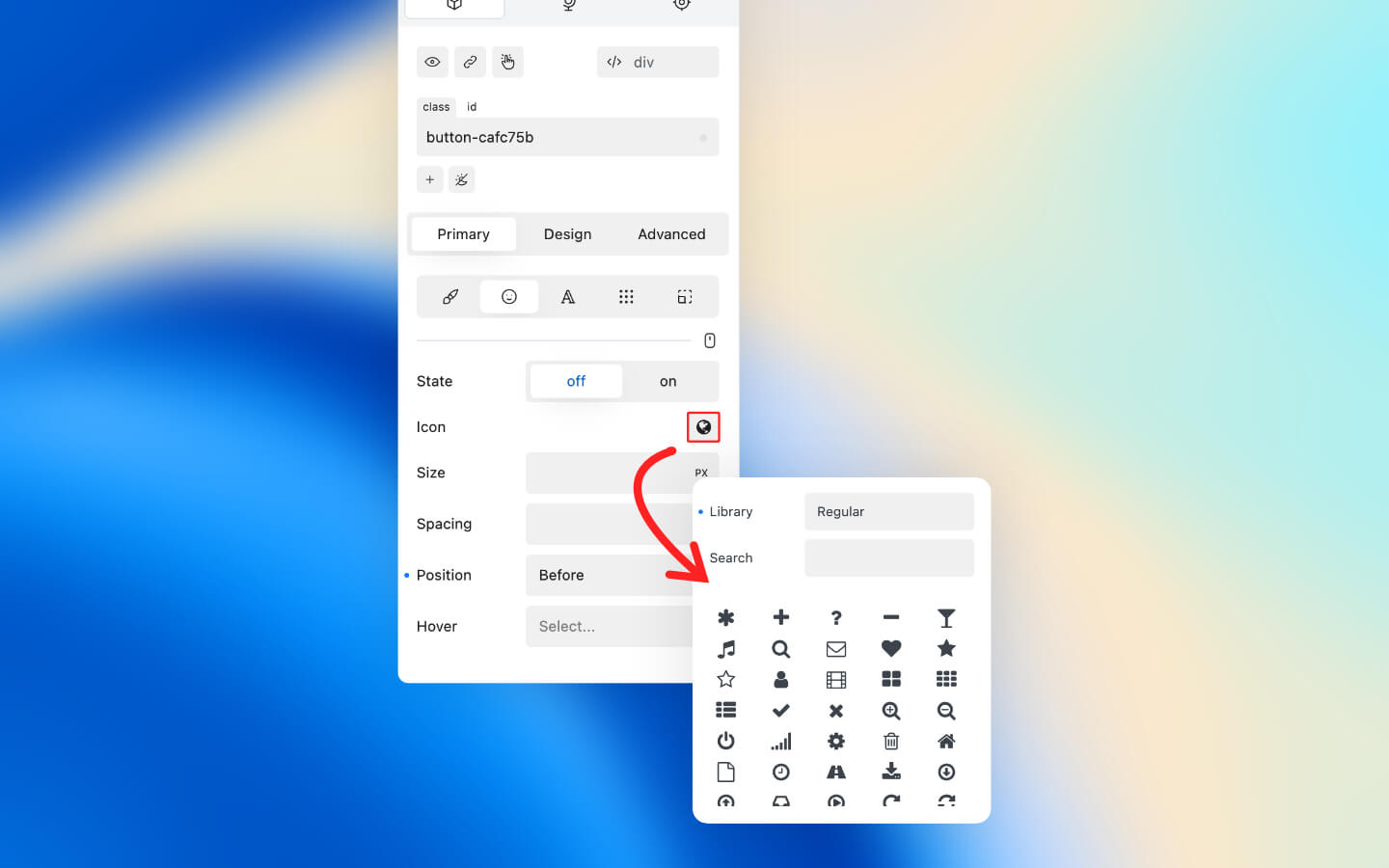 * Click Icon logo to open the Icon Library.