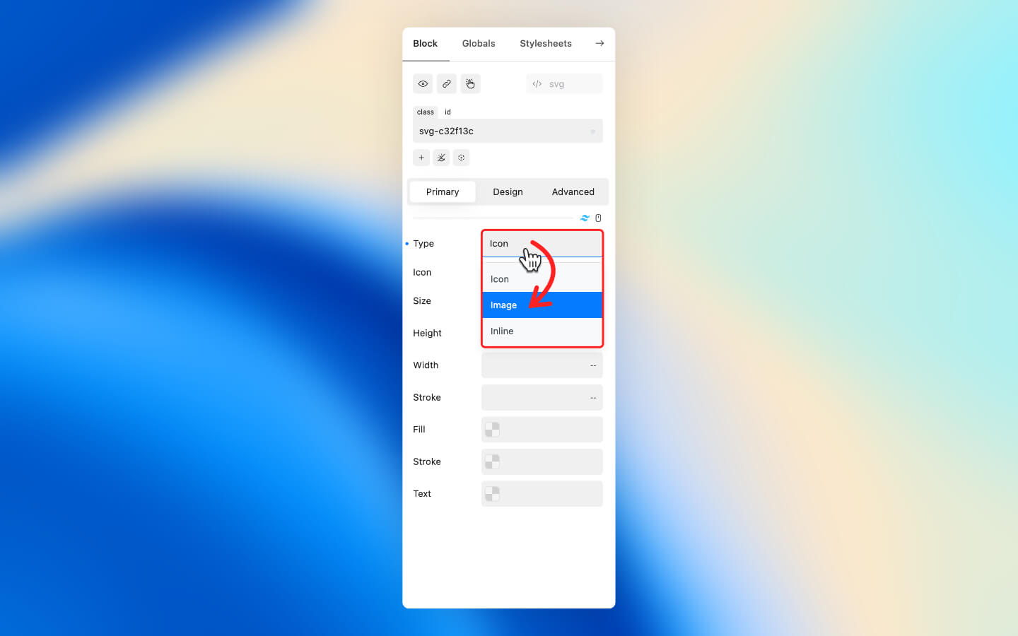 * In the Primary tab, set Type to Image.