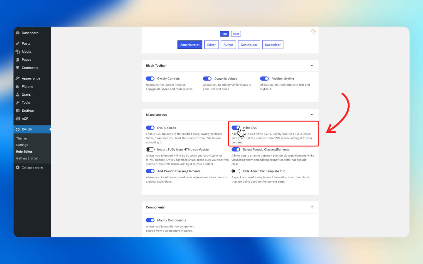 * In Miscellaneous, toggle Inline SVG to enable.