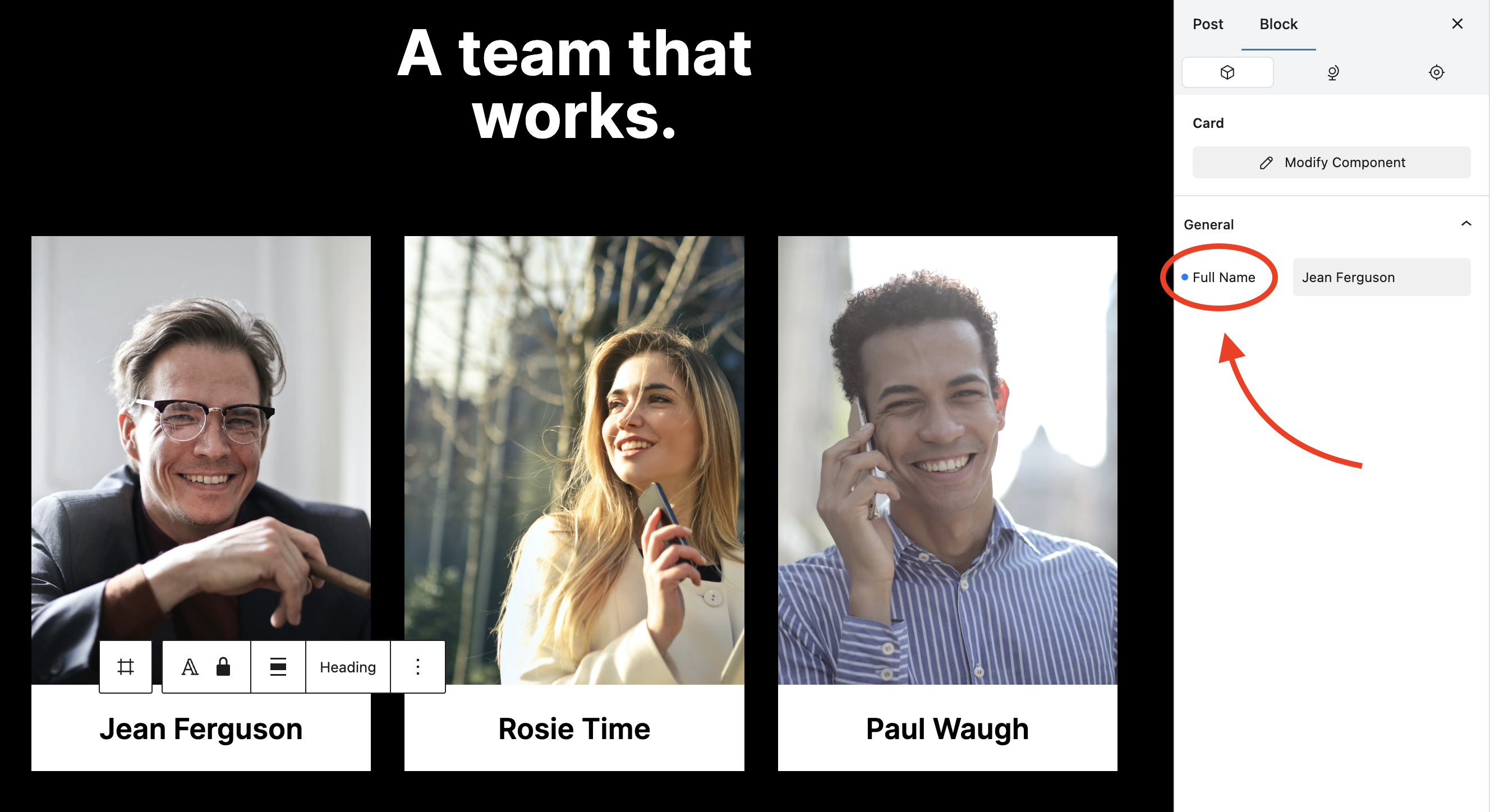 * Select "Modify" in the toolbar or the Block Inspector.