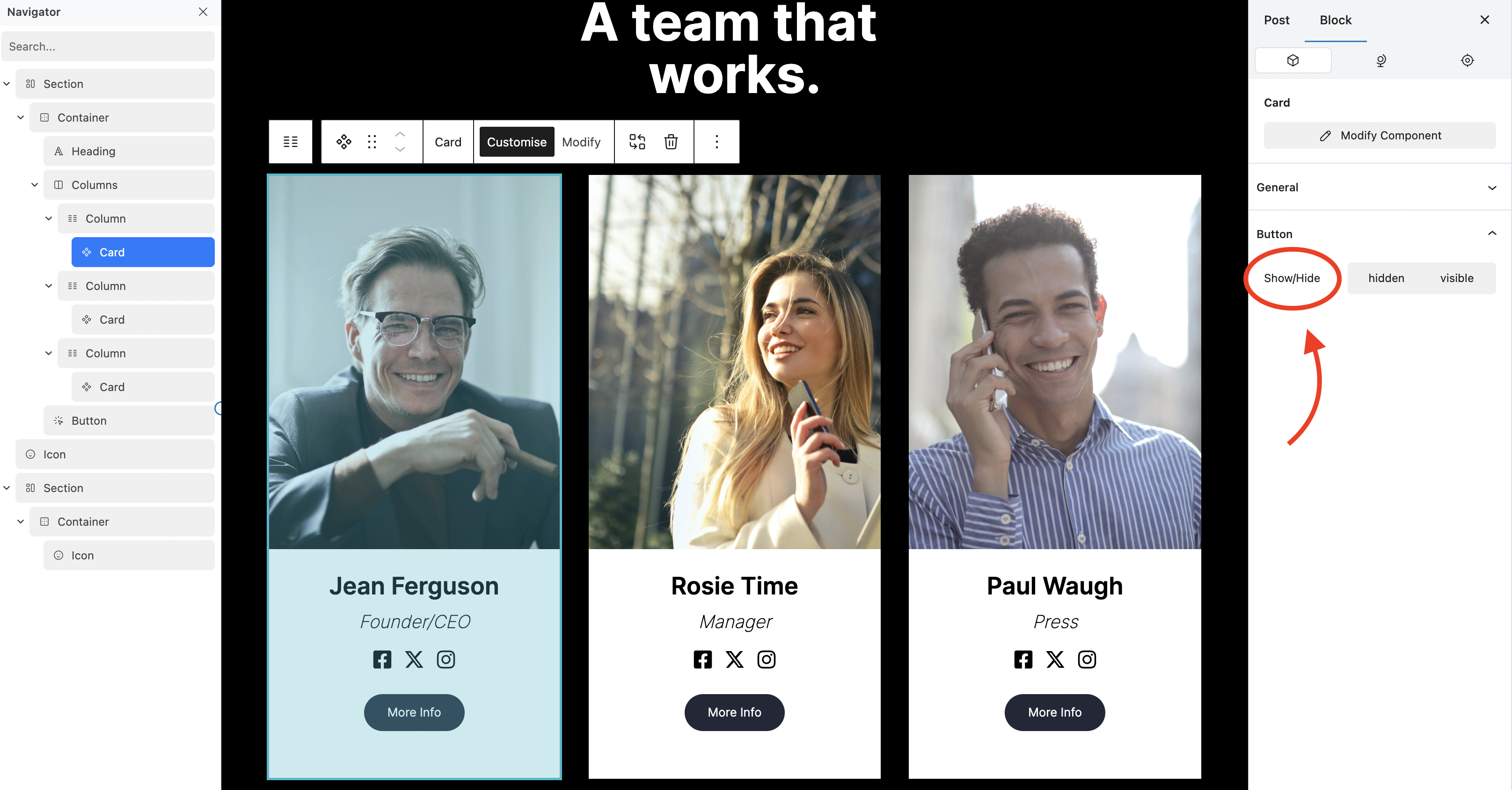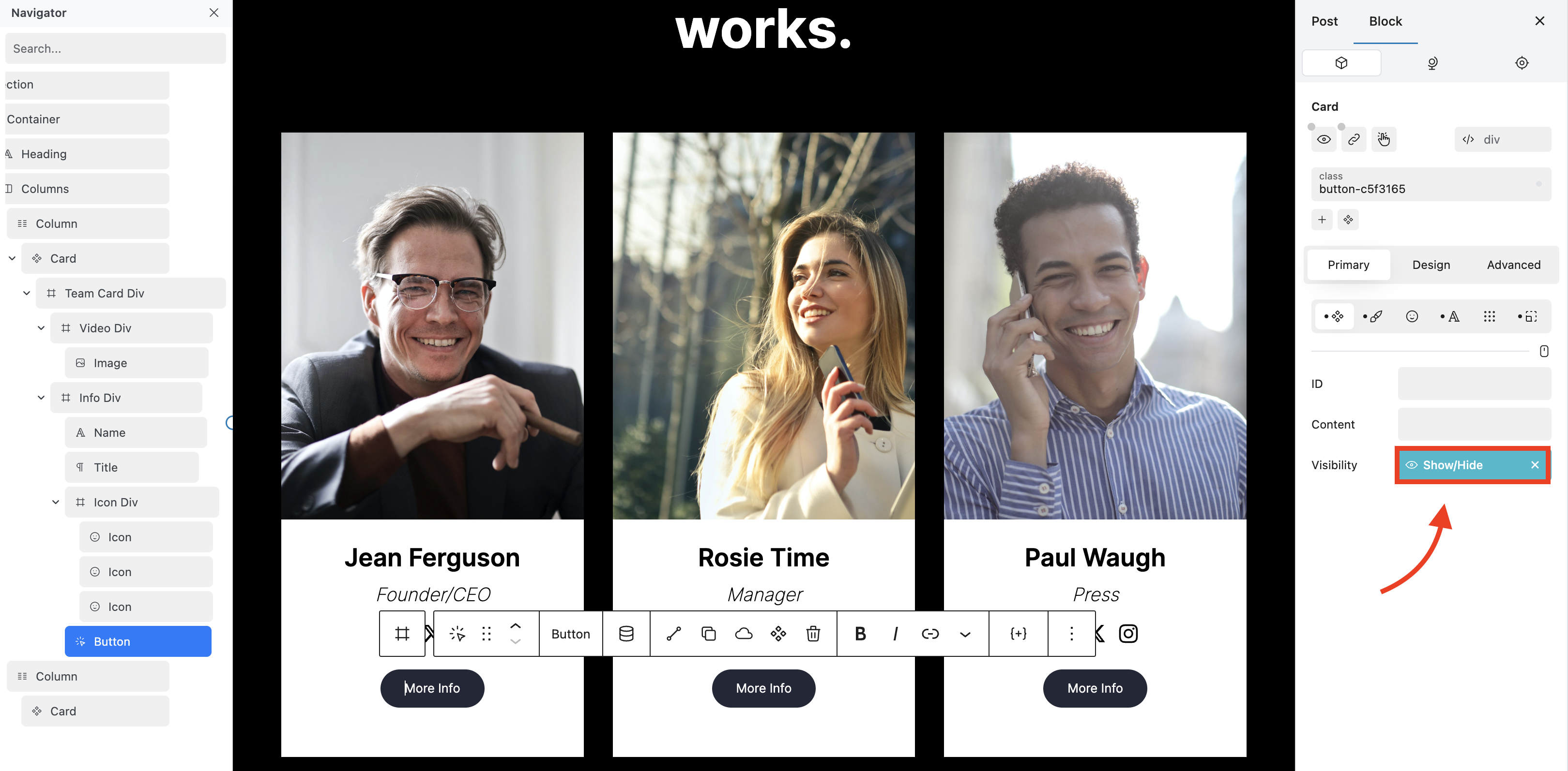The Visibility Property allows you to Show/Hide a block and set a default state.&#x20;