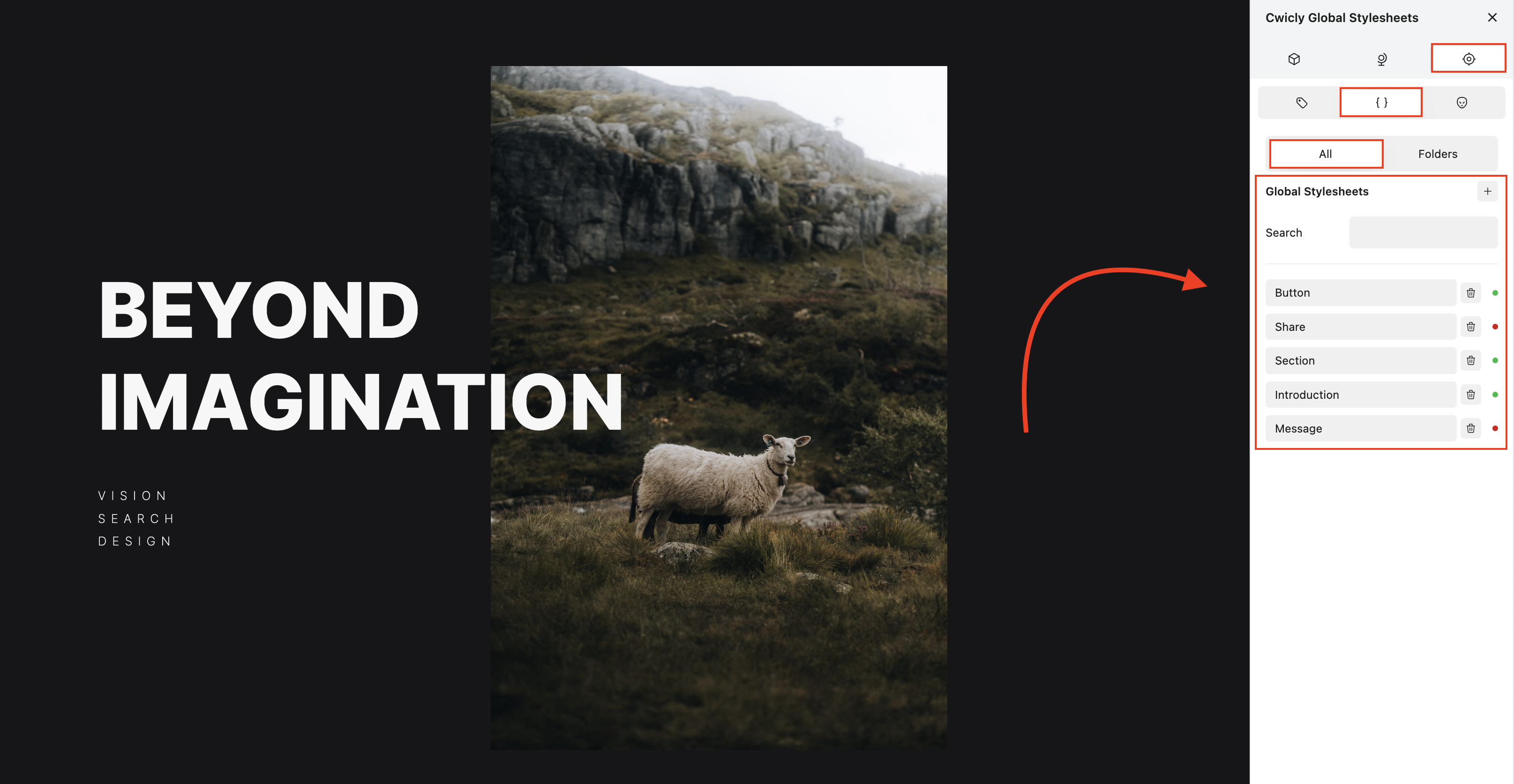To speed up your workflow, the Search bar allows you to find a Global Stylesheet rapidly and efficiently.