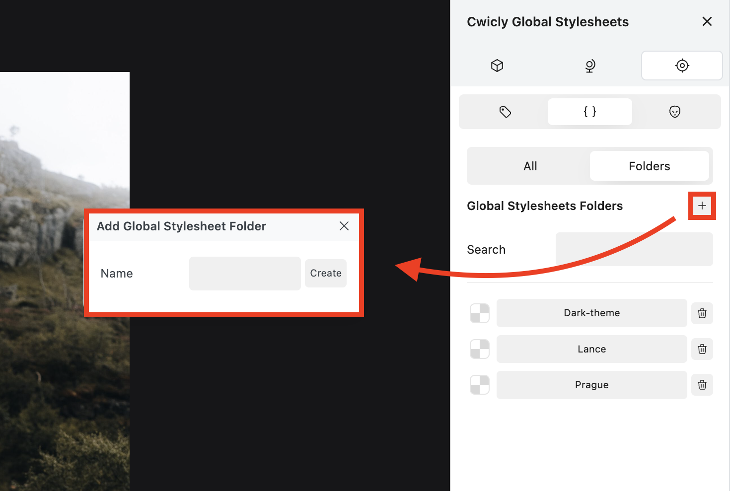 Click ➕ to add a new Global Stylesheet.